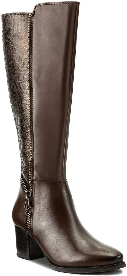 CAPRICE WOMENS 25540-39 329 BAROCCO Brown Leather Combination Heeled Long Boot