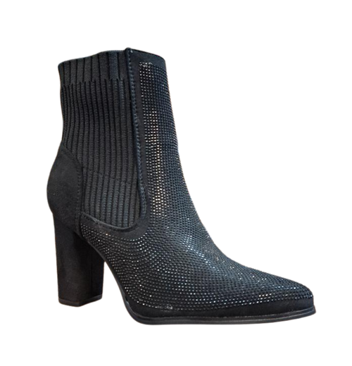 HEAVENLY FEET WOMENS OPUS Black Diamante Block Heel Ankle Boot