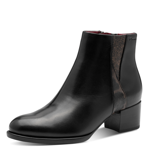 TAMARIS WOMENS 25366-45 001 Black Leather Comb Heeled Ankle Boot