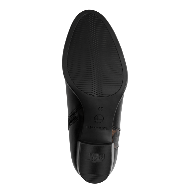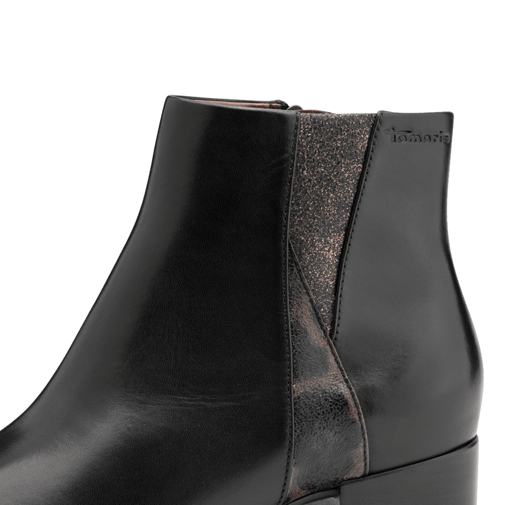 TAMARIS WOMENS 25366-45 001 Black Leather Comb Heeled Ankle Boot